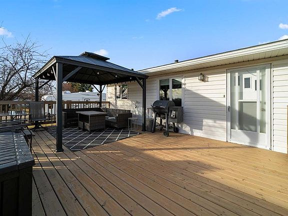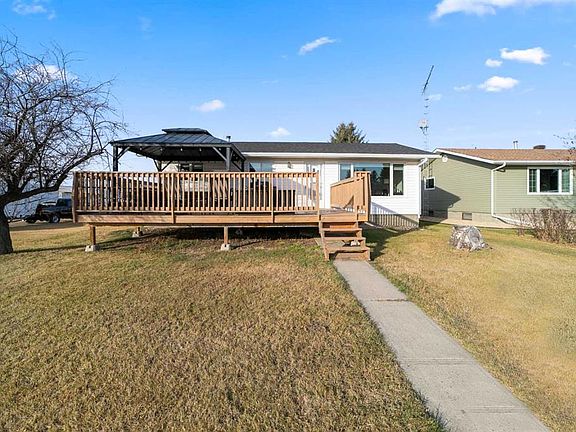 Welcome to this beautifully updated bungalow on a spacious corner lot in the heart of Daysland! This well-kept home offers fantastic value with a detached double garage and a layout that works perfectly for first time buyers, downsizers, or anyone seeking comfortable small-town living just 25 minutes from Camrose. Step inside to an inviting open concept main floor, featuring a brand-new kitchen with quartz countertops and a seamless flow into the dining and living rooms. The updated light fixtures, fresh paint, laminate flooring, modern trim, and new window coverings create a clean, classy and comfortable space to come home to! The main level also features two great bedrooms and a fully updated four piece bath. The side door entry offers a convenient mud room with laundry & storage, perfect for hanging your robe - your hot tub is right outside! Downstairs, the fully developed basement provides excellent additional living space, including another large bedroom, a spacious family room, a 3-piece bathroom and generous storage. Outside you'll enjoy the impressive 16' x 24' front deck with gazebo, perfect for morning coffee, entertaining or evening relaxation. Additional value-added features include RV parking, landscaping, vinyl windows throughout and recently installed water softener. The charming, full service community of Daysland has a school, healthcare, golf course, arena, shopping, and a friendly small town atmosphere. Move-in ready and full of updates— a must-see!