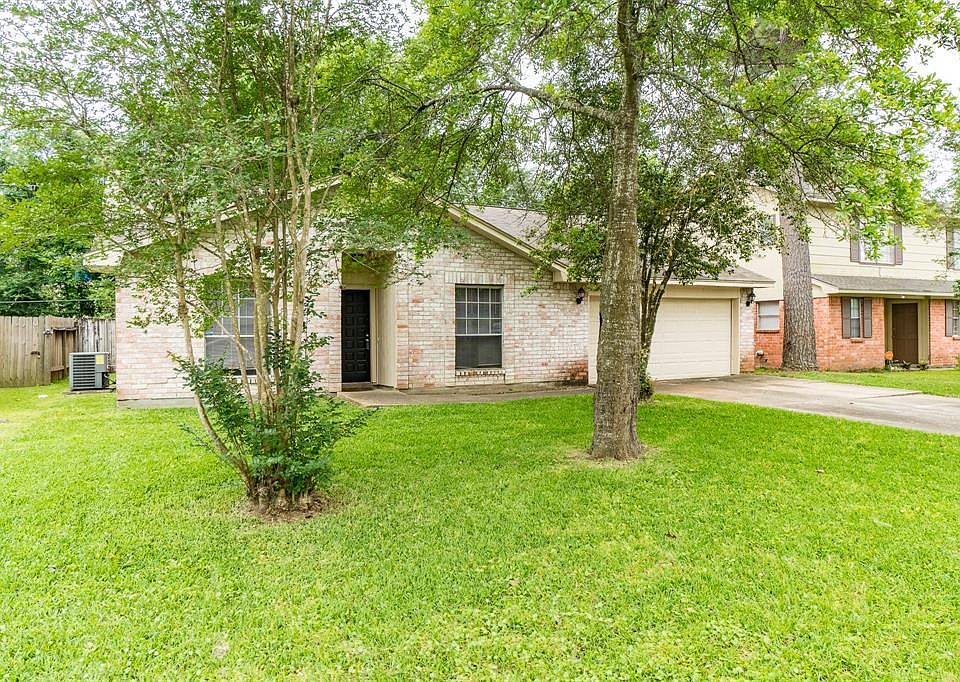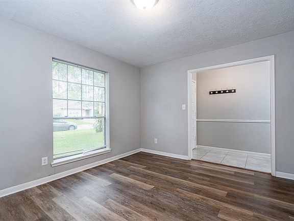 Wonderful starter home or investment property available in the Fairfax community. Single-story home is move in ready with neutral paint colors throughout and gorgeous wood-look laminate floors in the main areas. Formal dining room is located off the kitchen. Kitchen features granite countertops and stainless appliances and opens to the large living area. Living room features a high ceiling and cozy wood burning fireplace. Desirable split floor plan offers master bedroom on one side of the house and two bedrooms and a bath on the other. All bedrooms have carpet and walk-in closets. Very large backyard with mature trees and small patio will invite you to spend time outdoors. ROOF REPLACED 2015. Never flooded!