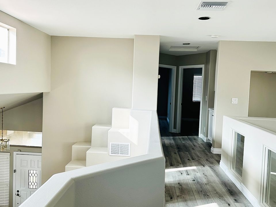 Welcome to this beautifully designed 2-story residence featuring 3 bedrooms and 2.5 bathrooms, ideally located just minutes from parks, shopping centers, restaurants, and convenient freeway access. Step into a dramatic entryway with soaring two-story ceilings in the living and dining areas, creating an open and airy ambiance. The main level offers a comfortable living room, a cozy family room, and an open-concept kitchen with a central island that seamlessly connects to the family room perfect for entertaining or relaxing. Enjoy casual meals in the charming breakfast nook by the window, overlooking the backyard. Direct garage access to the home, and separated laundry closet. Upstairs, all three bedrooms are thoughtfully situated for privacy. The master suite boasts high ceilings and a spacious walk-in closet, while a walking hallway separates it from the two additional bedrooms, ideal for family or guests.