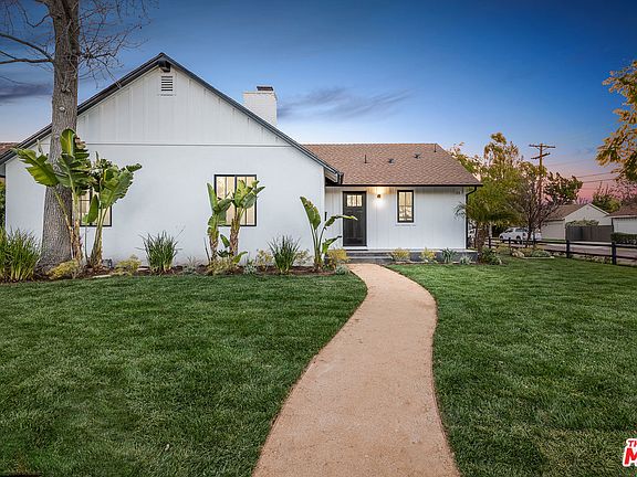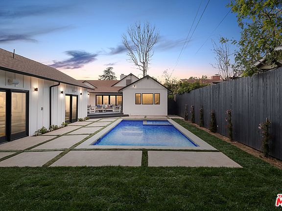 Reduced! Sexy modern vibe the moment you enter! Sweeping corner lot in Sherman Oaks. Totally transformed! Sophisticated & new! Must-have open plan surrounds private pool/spa. Soaring ceilings and bleached hardwood floors transition seamlessly from living room to great room and fireplace--all with sightlines to designer kitchen. Bertazzoni appliances. Large island houses wine refrigerator and microwave drawer. Recharge and relax under a vaulted ceiling in the airy and bright master suite with custom walk-in closets, en suite with frameless glass shower enclosure, floating double vanity. Designer tile floors and quartz countertops in all bathrooms. High-end sliders thru-out access sapphire-tiled pool and lush lawn. Move the party outside to new Trex deck. Indoor surround sound, poolside speakers, Ring doorbell, 4 security cameras and iPort with iPad. Permitted Guest house w/high ceilings, wood floors, huge living area/kitchenette, big bedroom, walk-in closet and large bathroom with lau