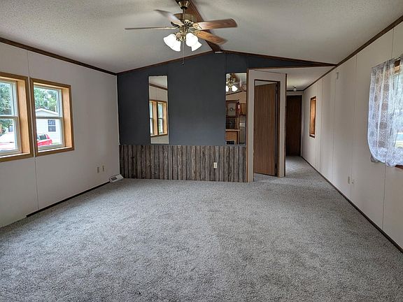 Listed by Elissa Erickson, KWBH, 605-877-4060. **MOTIVATED SELLER! Seller will give a $1,000 credit for repair carpet** Move in ready mobile home on a rented lot in established Northwest Rapid City neighborhood! *Built in 1990 and recently updated, this home offers 3 bedrooms, 2 bathrooms and 1,216sqft *Open concept living space in the center with sleeping quarters on either end of the home *2"x6" walls, insulated and sealed floors, fresh interior and exterior paint, new light fixtures and new flooring make this a move-in ready property *Eat in kitchen has good cabinet and counter space and black and stainless steel appliances *Breakfast bar for convenient seating plus a few options for your dining room table *2 bedrooms and 1 bathroom on one end of the home, great for family or guests *Primary bedroom on other end of the home for privacy, with a walk-in closet and ensuite bathroom with walk-in jacuzzi tub *Convenient laundry room with storage space and a door to the back yard *Wood deck off the front and back of the home- great for quiet nights outside *Flat interior lot with a large fenced yard with mature tree for shade and privacy *Designated parking area for 3 vehicles out front for off street parking. Home being sold as is.