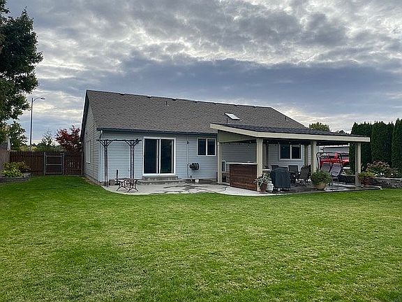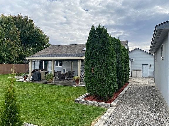 This is a 3-bedroom, 2-bathroom home that offers a 2-car garage with a 4 ft kick out, a 18x24 ft shop, RV parking, beautiful spacious fenced backyard with no neighbors directly behind you. The home sits on .275 acres and in a quiet u-shaped neighborhood. There is a 12x20 covered patio with countertop and mini refrigerator for outdoor enjoyment. Step inside to a well maintained home with two separate living areas, one off of the front door and one off of the kitchen. The kitchen has stainless steel appliances, built in microwave, and a butler pantry for all of your appliance, baking, and cleaning storage. Primary bathroom has double sink vanity and walk in shower. All carpet was replaced in 2018 with carpet or laminate, it was also painted and all woodwork, including bathroom vanities, trim, molding and doors were replaced. Original tile in kitchen, main bathroom, and walkway. New roof in 2022, new heat pump Dec 2018, new garage door spring and irrigation valves 2025. This house is in a convenient location and combines comfort, beauty and space with location.
