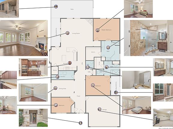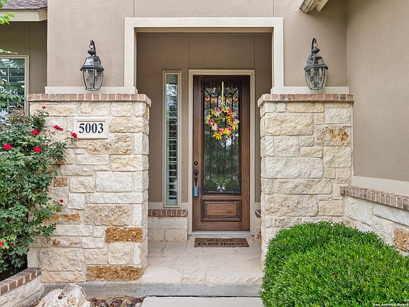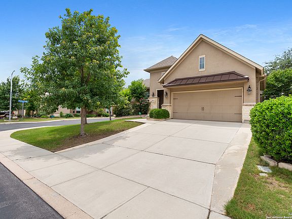 OPEN HOUSE: 12:30 - 2:30 pm on 7/26/2025. COME ENJOY THIS EXQUISITE HOME WITH TWO MASTER SUITES, each with its own spacious Private Bath, glassed-in shower, porcelain tile floors, walk-in closets with extra shelving to the ceiling. This home also includes an office or third guest bedroom. Upgrades include a walk-in shower in the master suites, outdoor courtyard, custom made kitchen island, windows with indoor shutters, epoxy flooring in the garage, extra shelving throughout and much more. The home features high ceilings all with crown molding. As you enter this elegant, lovely home, to the left is an office and an entry closet, which can be converted if you want to make the office into a bedroom. Then there's a separate formal dining or living room, followed by a large utility room with dual cabinets, built in shelves and attic access. The washer and dryer are available for sale separately. To the right of the entry is the garage featuring epoxy flooring, two water heaters, metal shelving on all four walls, including above the garage door, and a water softener; then is a half bath, another closet with extra shelving, and the first Master Suite with a full bath and a small courtyard. To the left is the gourmet kitchen including a moveable island with matching granite top, a gas stove, built-in oven, dishwasher, microwave, breakfast bar, ample space for an eat-in kitchen, and a walk-in pantry also with extra shelving. The kitchen is open to a spacious family room with windows on two sides and a gas fireplace. All the windows have custom-made interior shutters. To the right of the family room is the second separate Master Suite and luxury bath which includes double vanities, a custom-built walk-in glassed shower, a huge walk-in closet and an additional closet. The left side of the kitchen leads to a covered patio and a custom-built court-yard about 25 ft wide with porcelain flooring that matches the home perfectly and is shaded by midafternoon by two native oak trees. The patio also includes solar shade window screens, outdoor lighting, a drip-irrigation system for potted plants. and a gas outlet for your grill. This exquisite house has been well cared for in every detail. Hill Country Retreat is Del Webb's premier gated community in San Antonio and features a 28,000 square foot amenity clubhouse center that include a large indoor pool and two outdoor poosl and spas, Bocce, pickleball, tennis courts, a library, and a state of the art gym/fitness center game room. The community has been designed with extensive walking trails and greenbelt areas that you can enjoy in the security and privacy of this master-planned community. Please note that the HOA transfer fee is an estimate based on a sale last year in Hill Country Retreat and should be confirmed prior to closing.