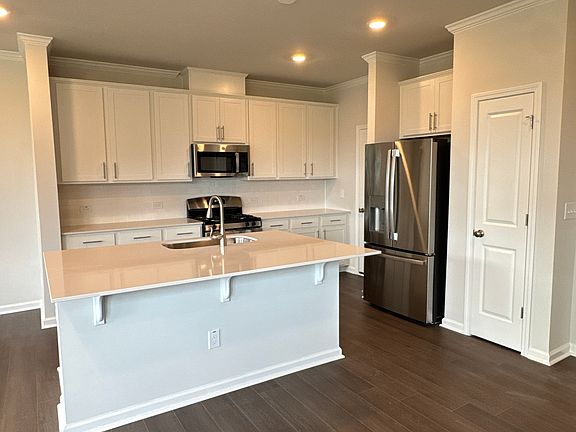 Welcoming 2-Story Townhome with Screened Porch! Step into this inviting home filled with thoughtful upgrades and plenty of charm. The main level features elegant crown molding and a bright kitchen with white cabinetry, quartz countertops, and a classic subway tile backsplash. Upstairs, you'll appreciate the oversized owner's closet and a spacious hall bath with a double vanity perfect for busy mornings or winding down at the end of the day. This popular floor plan blends comfort and style, making it a wonderful place to call home. With a charter school just minutes away, plus a walking trail and peaceful lake within walking distance, you'll love both the home and the neighborhood that offers a community pool and playgrounds