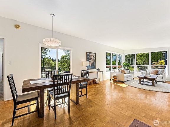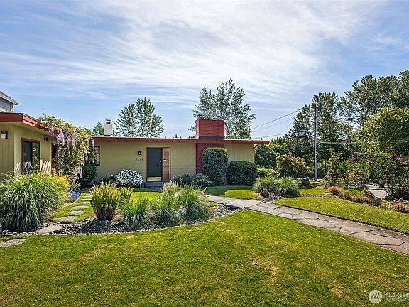 This timeless 1951 Mid-century Modern home is brimming with charm and nestled in the highly desirable Bryant neighborhood. Just a short stroll to Metropolitan Market, Burke-Gilman Trail, Mioposto, and a variety of other local favorites. Enjoy the convenience of top rated schools all within a reasonable distance, making this an ideal home for those seeking community, walkability, and classic style. This home is surrounded by mature landscaping, thoughfully designed for year-round enjoyment; offering beauty, privacy, and a seamless connection to the outdoors. Two bedrooms, 1 full, 1 3/4, and one half-bath. Two fireplaces. Laundry facilities upstairs and downstairs. One car garage, plus additional off-street parking.