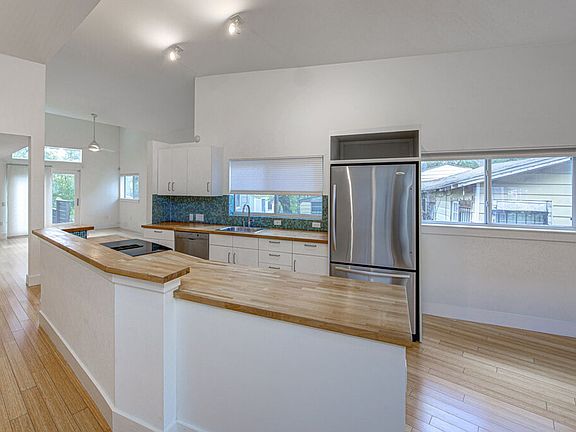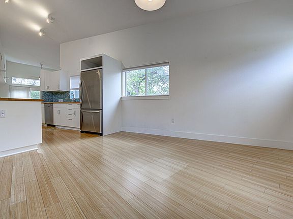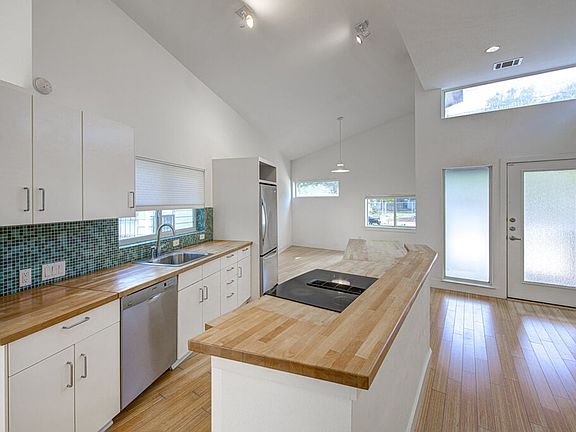 This well-maintained 2-bedroom, 2-bath home in East Austin is move-in ready with thoughtful upgrades. The kitchen boasts modern white cabinets, stainless steel appliances, butcher block counters, and a mosaic tile backsplash. Bamboo floors and vaulted ceilings fill the space with warmth and light. Enjoy a built-in desk area perfect for remote work, and bedrooms on opposite sides for privacy. The fenced backyard features a spacious deck and no neighbors directly behind for a private retreat. Just minutes from Hwy 183, East MLK, IH-35, and 4 miles from Downtown Austin, this home offers excellent access to the city's best restaurants, shopping & more!