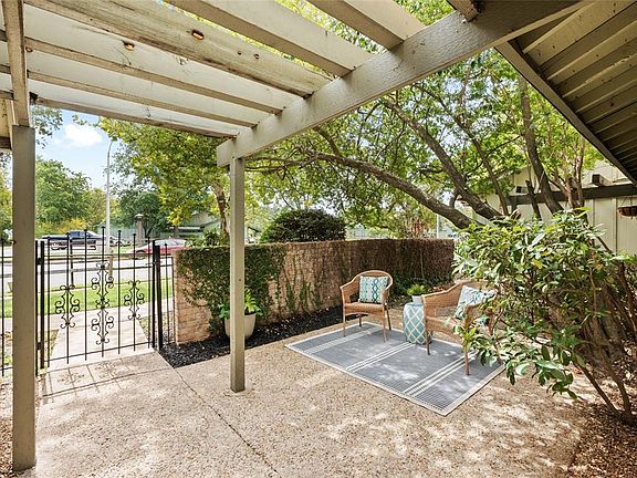 Modern living blends seamlessly with the character and charm of the past in this south Austin townhome. A gated courtyard entry shaded with mature landscaping welcomes you inside. Designed with functionality in mind, the open floor plan makes great use of its square footage and features 2 bedrooms, 2 and a half bathrooms, and an attached 1 car garage. An additional assigned parking space is also included. A comfortable living room warmed by wood-inspired laminate flooring, an updated kitchen, dining area, and powder bathroom are located on the main level. The primary bedroom with en suite bath as well as an additional bedroom/full bath are found upstairs. A second outdoor living space is located off of the breakfast area with ample room for both entertaining and relaxing with privacy. This home has been thoughtfully improved for the buyer desiring a move-in ready situation. Located in the desirable 78745 zip code, here you are moments from Battle Bend Park, St. Elmo District, Public Market, and just 7 miles from downtown Austin making it a great potential investment. The community pool is surrounded by large trees and is the perfect way to escape the heat. This sweet opportunity of a home is perfect for the buyer looking to live and play in an authentically Austin way!