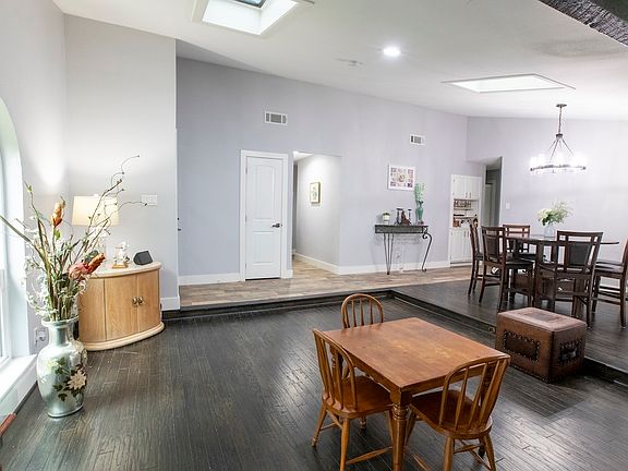 Open floor planSerene backyardStreet flood led lightStainless steel appliancesQuartz countertopsModern kitchenFenced backyard