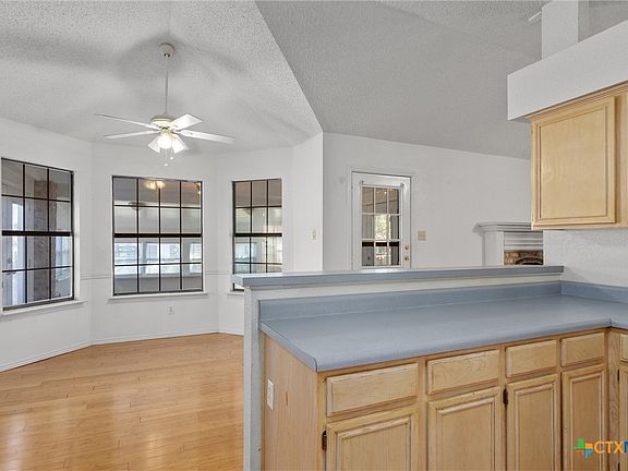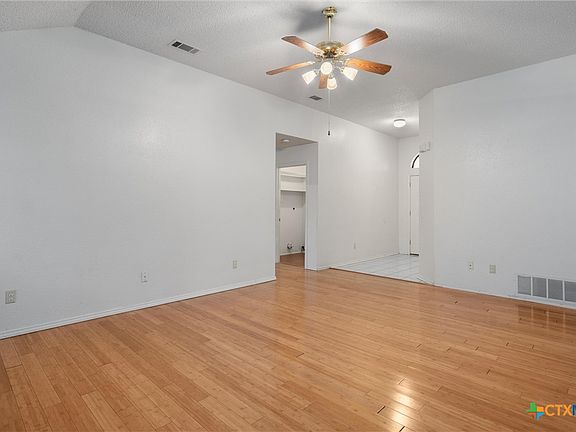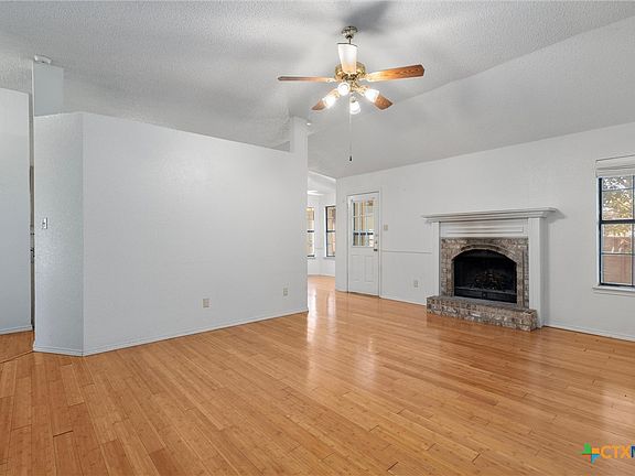Welcome to this charming and practical home nestled in a prime location with no HOA, offering both comfort and freedom of ownership. Step inside to discover a well-designed floor plan filled with natural light, high ceilings, and luxury vinyl plank flooring that adds both warmth and durability. The living room features a cozy fireplace, while the inviting kitchen features laminate countertops, a breakfast bar, abundant light wood cabinetry with convenient pull-out drawers, sleek white appliances, and a pantry for extra storage. Adjacent to the kitchen, the dining area with a bay window creates the perfect setting for morning coffee or cozy dinners. The primary suite provides a private retreat complete with a dual vanity, soaking tub, separate shower, and a walk-in closet. Two additional bedrooms offer flexibility for guests or a home office, and share a well-appointed full bath. A large enclosed, air-conditioned patio expands the living space—ideal for a sunny playroom, fitness area, or tranquil reading nook overlooking the backyard. Step outside to a spacious, fenced yard shaded by mature trees, perfect for outdoor gatherings, gardening, or simply relaxing in your private oasis. With no HOA, you have the freedom to customize and enjoy your property your way. Conveniently located just minutes from the Regional Airport and with easy access to US 190, TX 195, and I-35, this home offers seamless connectivity to shopping, dining, and recreational destinations.