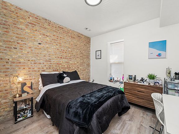 Investors, take note! This stunning, rehabbed 2-bedroom, 1-bathroom condo offers not only modern style and comfort but also a turnkey investment opportunity with rental income already in place. The unit is currently leased through April 2026, providing immediate great income. No active HOA or no monthly dues currently in place. Must be CASH BUYER. Step inside to an airy, open layout with exposed brick, high ceilings, and stunning natural light. Enjoy sleek vinyl plank floors, fresh paint, and a fully updated kitchen featuring quartz counters, white shaker cabinets, and a mosaic tile backsplash. Both bedrooms are roomy with great closets, plus in-unit laundry. Out back, a private porch is perfect for grilling or relaxing.