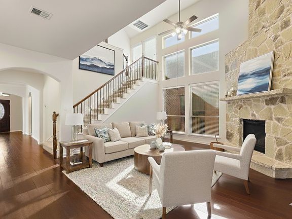 Welcome to your next home in the desirable Village Park Subdivision of McKinney! Inside you'll find tall ceilings and an open-concept layout perfectly suited for modern living. The expansive kitchen features a large granite island, gas cooktop, and generous cabinetry—ideal for entertaining or everyday meals. In the living room you’ll notice a floor-to-ceiling brick fireplace with elegant built-ins enhancing the space. Upstairs you’ll enjoy a large media room along with two secondary bedrooms, while the primary suite is conveniently located downstairs. Outside, the home greets you with beautifully manicured landscaping and lush greenery, plus a rear-entry driveway for added privacy and curb appeal. The Village Park community offers wonderful amenities including a beautiful pool, a spacious park, and a stunning lake—perfect for relaxing or spending time outdoors. Just a short drive from shopping, dining, and highly rated schools, this home blends comfort, style, and convenience in one of McKinney’s most sought-after locations.