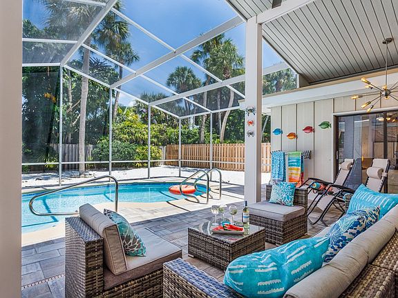 Welcome to the Sunkissed Pool Home, a luxurious 3-bedroom, 2.5-bath private residence on Siesta Key. Ideal for up to 6 guests, it features a secluded, heated pool (available for an additional fee) and a renovated interior with a stainless steel kitchen overlooking the pool area. The home offers comfort with a spacious family room, Smart TVs, and WiFi. Bedrooms include a master suite with a king bed, en-suite bath, and direct pool access, plus two queen bedrooms. Just 1.4 miles from Siesta Key Beach and 1.8 miles from Siesta Key Village. Includes beach accessories, washer/dryer, and a small vehicle garage. Pet-friendly (1 dog, under 30 lbs, fee applies). No smoking/vaping indoors. Monthly bookings only.
