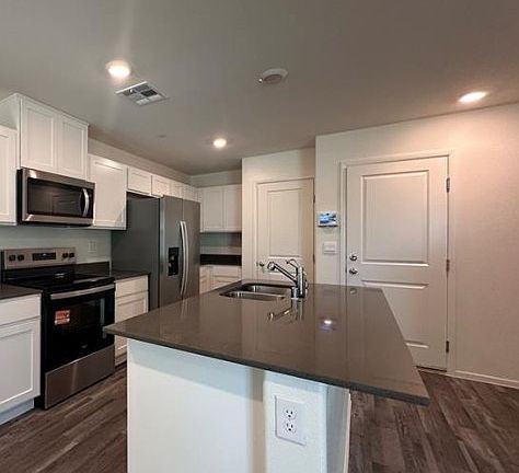 Discover comfort and convenience in this brand new DR Horton townhome, perfectly situated in the thriving Tempo Trails community. Step inside to find a thoughtfully designed layout featuring brand new stainless steel appliances, a spacious pantry, and a sleek double sink in the kitchen. The open-concept main floor includes a defined living room and a separate dining area both enhanced with recessed lighting and window blinds for a modern touch. Upstairs, the generously sized Primary Bedroom provides a private retreat complete with an en-suite bath and an integrated closet. Additional highlights include an upstairs laundry area for added convenience and a versatile loft space at the top of the stairs perfect for a home office or cozy seating nook. Located just minutes from premier shopping, dining, and entertainment, this home offers the perfect blend of lifestyle and location.
