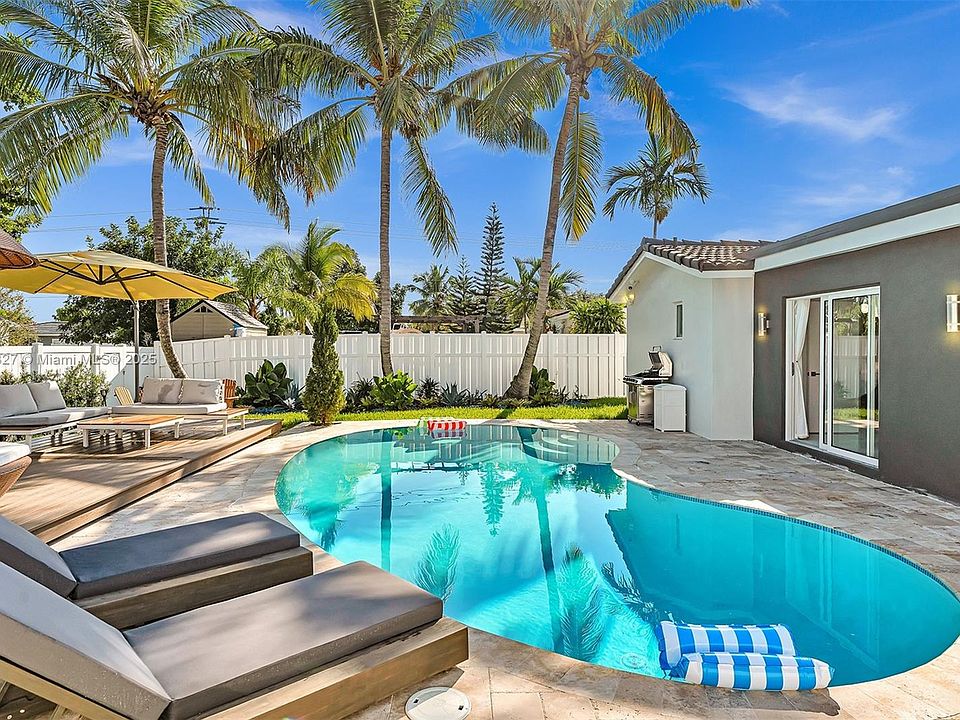 Experience upscale living in this stunningly renovated 3-bedroom, 2-bathroom home in the heart of Hollywood. Offering a seamless blend of modern comfort and timeless sophistication, this residence showcases a full renovation with designer finishes throughout. The custom kitchen boasts high-end cabinetry, brand-new stainless steel appliances, and impact-resistant windows and doors. Each of the three spacious bedrooms is tastefully detailed, with the master suite serving as a serene retreat. Outside, enjoy a private oasis featuring lush landscaping, a heated pool, and a stylish lounge deck. Currently operating as a licensed short-term rental with the city of Hollywood, this property is offered fully furnished, equipped, and ready to continue generating income.