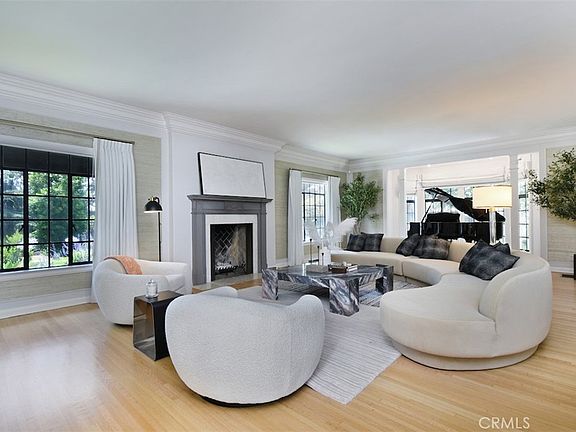 Tucked behind gates in the heart of Los Feliz, where vintage meets effortless chic, this 1927 English Tudor estate blends architectural style with bold, modern luxury. The main residence offers five bedrooms and seven bathrooms, fully reimagined for today’s lifestyle. Above the detached garage, a one-bedroom guest house adds flexibility for visiting artists, in-laws, or your latest out-of-town muse. Step through the arched entry and into a living room lined with original moldings, a grand fireplace, and a bay window that bathes the space in natural light. Across the hall, the dining room brings drama with a hand-painted French mural, designer chandelier, and French doors that open wide to the central courtyard. Between them, a pub-inspired wet bar with a tin ceiling and cozy hearth bench feels like it was plucked from a private Soho club. The family room brings relaxed California living with double doors to the outdoors, built-in bench seating, and another fireplace. The kitchen? A design knockout. Beautiful veined marble, oversized island, custom cabinetry, and chef-grade appliances. There’s even a separate laundry room just for pool towels. Outside, the lush courtyard ties the home together, while the backyard channels full-on resort vibes with a sparkling pool, spa, water features, and a trellised outdoor kitchen that begs for Sunday brunch or midnight cocktails. Upstairs, the primary suite is your retreat: Double-door entry, custom oak walk-in closet, and a spa-level bath with heated floors and a fluted soaking tub. A discreet glass door leads to a spiral staircase down to the family room. Every other bedroom features an en-suite bath and luxe designer details. A second laundry keeps daily life seamless. All this in Los Feliz, with Griffith Park trails, Little Dom’s dinners, and that perfect mix of history, edge, and elegance you just don’t find anywhere else in LA.