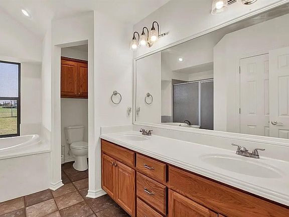 Amazing location near Sherman High School, Texas Instruments, and Global Wafers. Bring your horses and enjoy country living on your 6 acres with a 5-stall barn with tack room, and a round pen.