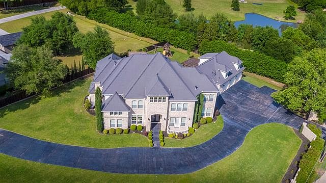 Custom-designed, luxury smart home Estate on nearly 1 acre. Private stone wall surround matching architecture of the residence w 2 gated entries. 6 bdrms, 5.1 baths, 2 dining, 3 liv including attached guest apt w entry from upstairs or 3-car gar w porte-cochere - perfect for generational living. Circle drive leads to grand entrance w high ceilings, stunning chandelier w auto lift, marble floors, formal liv w gas fp, study & main living area open to kitchen & bkfst w amazing view of the outdoor oasis w pool & spa, pergolas, outdoor living & kitchen w attached grill. Master suite & guest bdrm down w 3 bdrms, game rm, media rm & bonus play rm upstairs. No HOA!