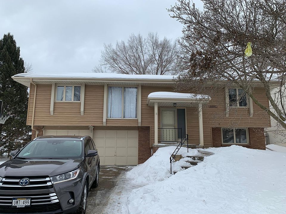Fabulous Split entry house with open floor plan, large living Room with full stone wall, dining room, large kitchen with eating space , 3 bed rooms, 2 rooms open to the large deck. Title entry, Basement, kitchen, laundry room. Master bedroom with his and hers closets. 3 car garage is tandem. this home backs to park and trails. Close to the shoping Center. Call following phone numbrs for showing: 402-312-1986 or 402-718-5419