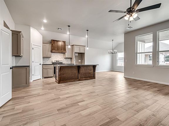 As you step onto the covered porch, adorned with stunning accents, you’re immediately greeted by a warm and welcoming atmosphere. Enter the expansive open living area, where comfort and style blend with the open-concept kitchen. The open concept allows you to stay connected to the space, featuring a large center island, a spacious pantry, custom cabinetry, and thoughtfully chosen details that enhance its visual appeal. Retreat to the serene primary suite, complete with a ceiling fan and gorgeous lighting pouring in through energy-efficient low-E windows, creating a tranquil, bright space. The en-suite bathroom offers dual vanities, ample linen storage, a relaxing garden tub, a walk-in shower, and a generous walk-in closet for ultimate convenience. The secondary bedrooms are separate from the primary suite, offering plenty of storage, and the guest bath includes a beautifully tiled shower and tub combo. For peace of mind, your home is backed by a 10-year structural warranty, as well as manufacturer warranties, making it easy to maintain and enjoy for years to come. You will love coming home to Mustang Park with a swimming pool, clubhouse, outdoor park, and basketball courts. When you are ready to call it a day, rest easy in your brand new home! INCENTIVES ARE AVAILABLE IF YOU NEED SOME CLOSING COSTS OR AN INTEREST RATE BUYDOWN.
