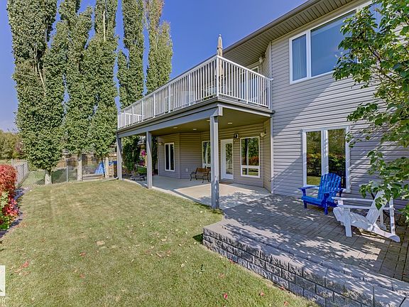 Welcome to this exquisite former showhome by Royer Built Homes! This immaculate walk-out bungalow is a masterclass of quality, in a beautiful setting. This executive bungalow features an open concept layout with soaring ceilings and solid hardwood floors. The large kitchen features maple cabinetry, granite countertops, upgraded appliances, a large pantry, and an island that seats 8 comfortably. Enjoy entertaining in the connecting living & dining spaces with a wall of window views, a stone-faced fireplace, and direct access to the expansive exterior deck. The well-appointed primary bedroom has a second fireplace, a large walk-in closet, and a stylish four-piece ensuite that conveniently connects to the upstairs laundry. A second bedroom and bath complete this level. The lower level has 2 additional bedrooms, 2 additional bathrooms, 2nd laundry, and a huge workshop/storage area! Additional luxuries: Staircase from the (23x27)garage to the basement, most windows have new glass, in-floor heating, and more!