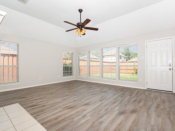 Neutral colors throughout and soaked in natural sunlight; this home has spacious rooms, high ceilings, low maintenance flooring, and updated light fixtures. The Texas sized living room offers a cozy fireplace and a wall of windows. Beautiful kitchen with white cabinetry, granite counters, stainless appliances, an island, breakfast bar, plenty of storage, and a huge breakfast area, 18X15!