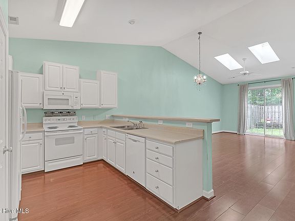 Convenient central location this townhome is an open floor plan, featuring vaulted ceilings that fill the space with natural light. No carpets! Laminate flooring adds warmth throughout, while a spacious sliding glass door opens to a beautifully landscaped backyard retreat. Carleton Place community includes a lovely clubhouse and pool, providing the perfect setting for relaxation and connection. With a prime location near Wrightsville Beach, UNCW, shopping, and dining.