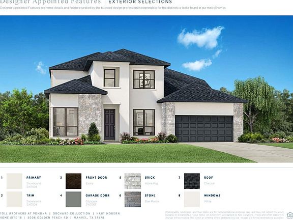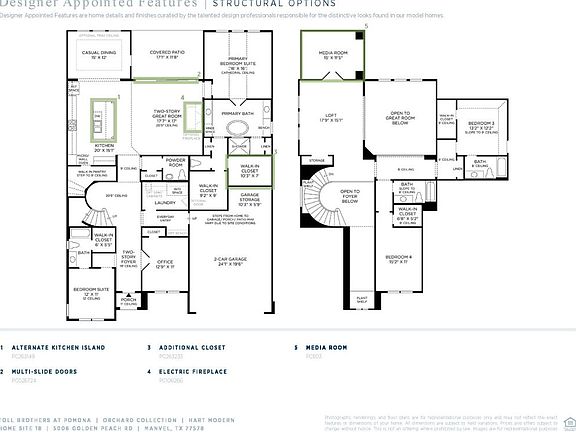 The Hart Modern features a lovely foyer with a soaring ceiling and an elegant curved staircase that is sure to impress. A secluded bedroom suite with a full bath and walk-in closet is perfect for overnight visitors. A home office with French doors is perfect for working from home. The open great room includes multi-slide doors that open your living space to the outdoors. A well-appointed kitchen with stainless appliances is sure to please the family chef. A dramatic cathedral ceiling in the primary bedroom suite adds a touch of drama, and the luxurious bath resembles that of a five-star resort. Entertain in the open loft with the attached media room. Added highlights include two spacious bedrooms with full baths and walk-in closets, an oversized garage for added storage, and so much more. Disclaimer: Photos are images only and should not be relied upon to confirm applicable features.