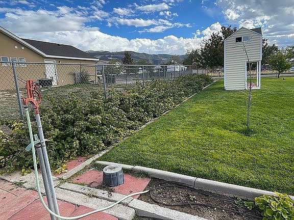 I love that it's a corner lot with access from two sides, close to school (one block) and church. The house has spacious bedrooms and two full bathrooms. Large storage room with shelving. There are two 20' Conex containers tucked out of sight and a "clubhouse/playhouse" for the kids. The yard is fully fenced and secure, and has a large garden area with water spigot nearby.
