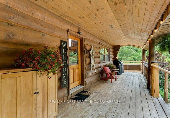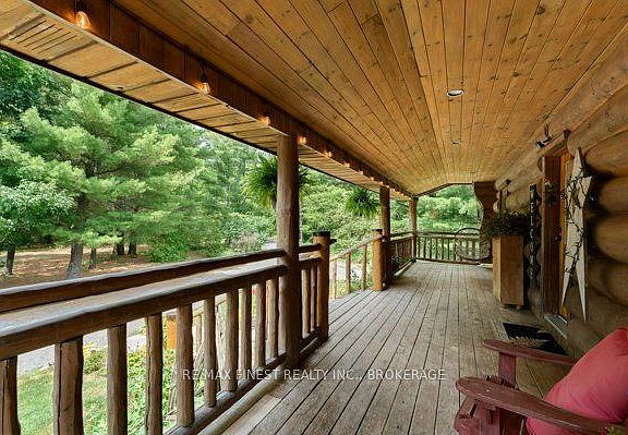 Nestled amongst mature trees on a quiet country road just 20 minutes to town, this stunning BC Fir Log home situated on a tranquil and private 4 acres is sure to impress. The home cannot bee seen from the road and features a turn around driveway lined by lilacs ideal for a trailer, boat, etc. with access to drive shed ideal for storing your toys. As you pull up to the front entrance you are immediately greeted by a large welcoming front porch spanning the entire front of the home ideal for morning coffees or unwinding after a long day at work. Once done enjoying the beautiful setting, as you head into the home you will appreciate the amazing wood work and log details spanning two storeys providing a warm open feeling easily integrating your Kitchen, dining, and living areas punctuated by a centrally located fireplace. Natural light floods the home in abundance, gracing the living area, country kitchen with island and spacious dining ideal for entertaining and family gatherings. The main floor also features two good sized bedrooms as well as a lovely 4 piece bathroom. As you ascend the skillfully crafted wood stairs, you arrive at the landing overlooking the main floor and enter into the large primary bedroom with balcony and 4 piece ensuite. The functionality and appeal of this already impressive home is further compounded by a bright walkout basement withnew carpet and easy access both from the side of the home through your attractive mudroom as well as the backyard leading out to the stamped concrete patio and hot tub overlooking the peaceful grounds . The basement features plenty of storage, a home office, a rec room as well as a family room with the possibility of creating another bedroom or in-law set up. While already impressed, let me leave you with a few additional conveniences; there is a poured pad ready for a garage if desired, the new front entry steps are sure to impress, many windows are newer, chicken ready set-up, and the fireplace is WETT cert!