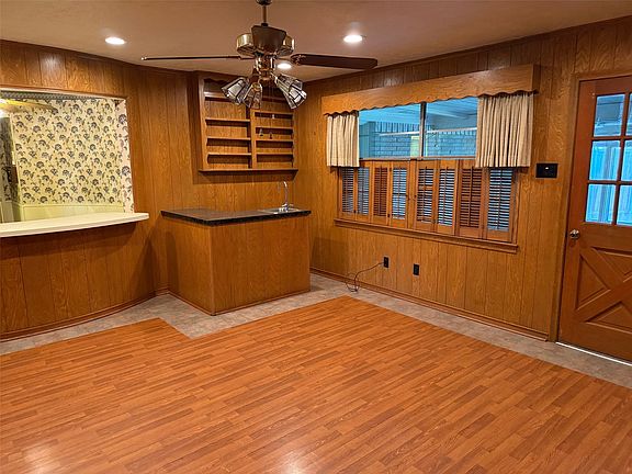 Attractive home set in the midst of several mature oak trees on a huge corner lot. This home features 4 bedrooms, 3 baths, 2 car garage, 4 Living areas, formal living and dining rooms, large circular breakfast nook, custom stone fireplace, vaulted ceiling, hardwood floors, wet bar, wood paneling, several ceiling fans, New cedar fence, sprinkler system, New composition roof and gutters, and freshly painted exterior, security alarm. Located in the heart of North Dallas with close proximity to shopping, dining, schools, major highways. Bonus square Gameroom footage of over 260' not included in quoted square footage. Open floorplan offers great potential and priced for quick sale. A Great Investment. Property to be sold AS IS Condition!
