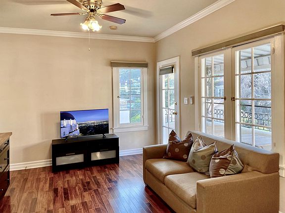 CHARMING STUDIO IN THE HEART OF LOS FELIZ, HOLLYWOOD Welcome to this charming studio located in the heart of Los Feliz, Hollywood. As you step inside, you'll be greeted by an open space plan adorned with meticulous tile work. The kitchen boasts top-of-the-line cabinets, a butcher block countertop, a farmhouse sink, and an elegant oil-rubbed bronze faucet. The hardwood floors and saltillo tiles create a warm and inviting atmosphere. Polished chrome accents adorn the bathroom, while polished brass accents add a touch of sophistication to the living area. The white crown molding and baseboard throughout the studio exude a classic charm. A stunning iron staircase leads to the second-floor balcony, where you can enjoy picturesque views of Griffith Park Observatory. The studio is conveniently located within walking distance of Los Feliz Village shops and restaurants, the Greek Theater, and Griffith Park. A short drive will take you to the Kodak Theater and downtown. Additionally, you'll find major grocery stores such as Albertsons, Vons, Ralphs, Gelsons, Johns, and Trader Joe's in the central vicinity. Situated next to Griffith Park, the largest municipal and urban wilderness area in the United States, the studio offers easy access to numerous walking and hiking trails. The park is home to the Los Angeles Zoo, four golf courses, the Greek Theater, the Griffith Observatory, the Autry Museum, and various recreational activities including horseback riding, public tennis courts, bicycle rentals, pony rides, camping, picnic areas, and a swimming pool. Within the neighborhood, you can also find two Frank Lloyd Wright museums the Hollyhock House and the Ennis-Brown House (by appointment), as well as Richard Neutra's most famous house, the Lovell House. Los Feliz Village Center is within walking distance, offering a variety of restaurants, coffee shops, a mail/shipping store, and grocery and health food stores. The neighborhood itself is quiet and provides a peaceful retreat between sightseeing trips and the bustling nightlife of Hollywood. Los Feliz, which means "happy" in Spanish, is an apt name for this delightful and livable area of Los Angeles. Within walking distance of coffee shops, theaters, boutiques, and sidewalk cafes on Vermont Avenue between Franklin and Hollywood, or along the Hillhurst Corridor between Los Feliz Boulevard and Prospect Avenue, it's hard to feel anything but content. In a city where people often spend more time in their cars than out, Los Feliz offers a welcome respite with its neighborhood feel. Apart from its abundant entertainment options, Los Feliz is also home to tranquil neighborhoods and notable architecture, making it a truly special place to reside. Situated north of East Hollywood and just south of the Santa Monica Mountains, Los Feliz is adjacent to the neighborhoods of Hollywood and Silver Lake. This vibrant district includes the southern face of Griffith Park and is renowned for housing iconic landmarks such as the Griffith Observatory and the Greek Theatre. This is a charming unit. Utilities are included in the rent.