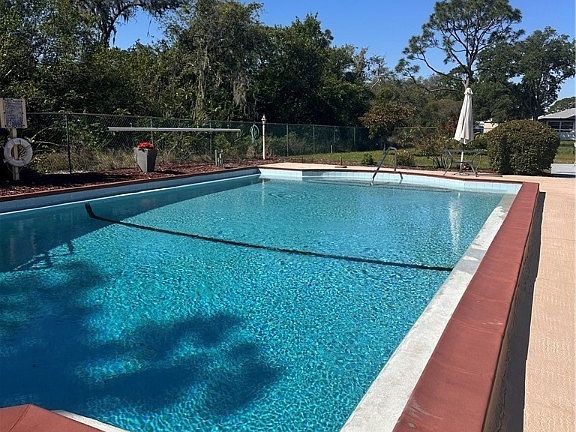 Step out of your screened-in, furnished Lanai and into a private sparkling pool steps away, with a peaceful common area featuring tables and chairs- ideal for relaxing or socializing with friendly neighbors.