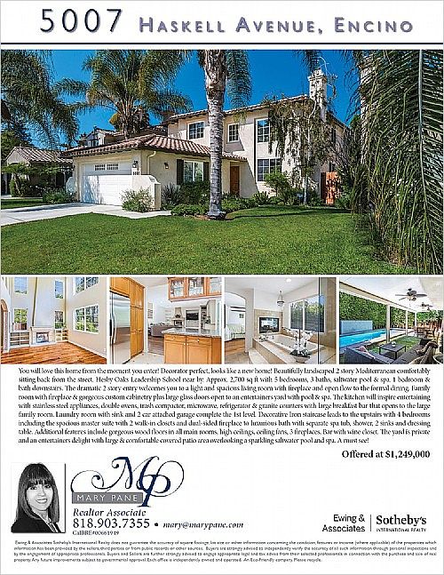 This 2700 square foot single family home has 5 bedrooms and 3.0 bathrooms. This home is located at 5007 Haskell Ave, Encino, CA 91436.
