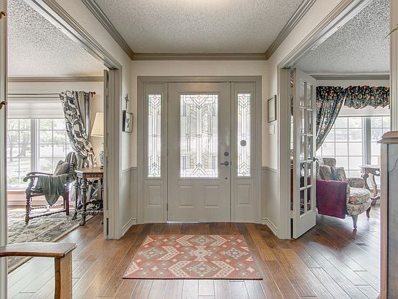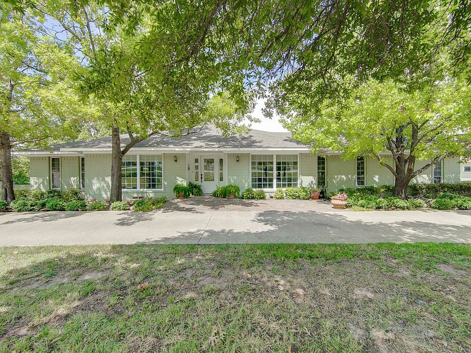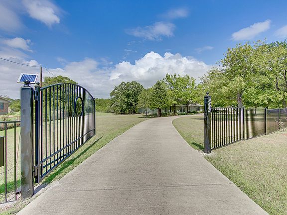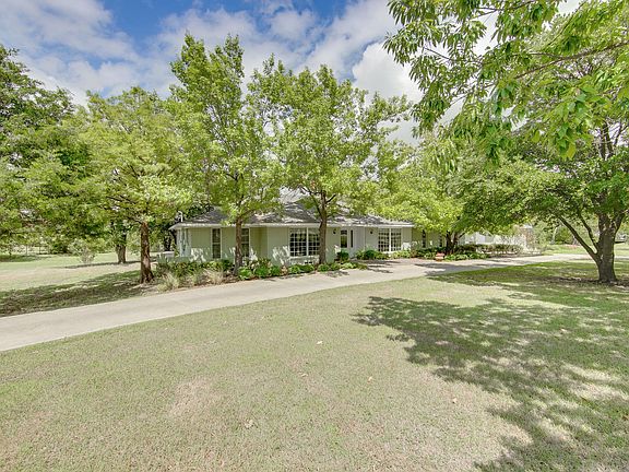 Metal gates and circle drive frame this beautiful ranch style home on creek lot with acreage. Open kitchen with granite countertops, glass tile backsplash, and wood floors is open to the dining area and family room with cozy gas log fireplace. This home offers plenty of space for the growing family with unlimited possibilities. Minutes away from major highways, Firewheel Mall, golf & more. Large outbuilding great for guest suite or storage. Additional building can be used as barn, workshop or extra storage. Foundation has been poured and plumbing roughed in for large addition to main house.