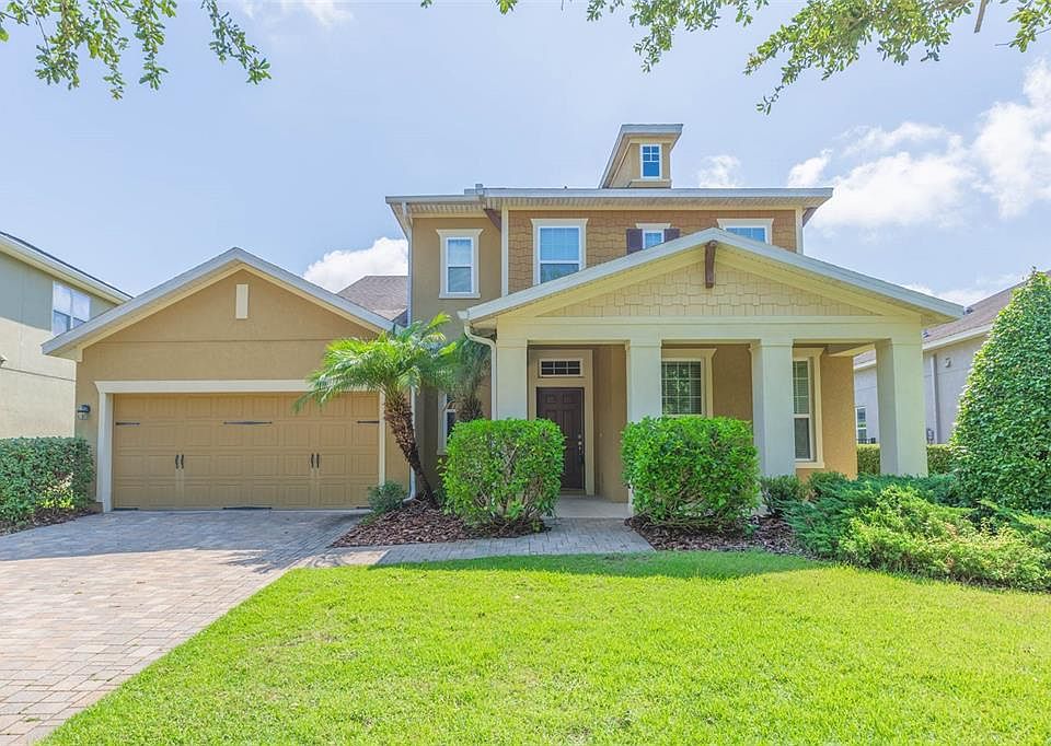 BEST LOCATION IN STARLING! Welcome home - what a showstopper! Ideally situated across the street from the Starling Club, you’ll be steps away from two resort-style pools (one heated year-round), a splash zone, playground, fitness center, and two dog parks and school BUS STOP! This two-story Craftsman home boasts 4-bedrooms, 3.5-bathrooms, an office, and a bonus room. The exterior features a brick-paver driveway and walkway, inviting you through the covered front porch and elegant foyer which is adorned with crown molding. This spacious open floor plan will sweep you off your feet from the moment you enter. Inside, you will find yourself in the formal dining room and office, which has wood floors and French doors. Continuing to the back of the home, you’ll pass by the spacious laundry room with built-in shelving and the powder room. The large great room is filled with natural light, providing plenty of space for relaxation and entertainment. The kitchen is a chef's dream, boasting 42" maple cabinets, granite countertops, decorative backsplash, a walk-in pantry, stainless steel appliances, gas-stove, an eat-in area, and an island. The open concept extends to the covered lanai and a backyard that you can turn into your own private oasis. The master suite, privately situated at the back of the home on the first floor, boasts crown molding, a tray ceiling, a walk-in closet, double sinks, a garden tub, a linen closet, an oversized shower, and a private water closet. Upstairs, you will find an expansive bonus room and three bedrooms, two of which feature walk-in closets. Additionally, two of the bedrooms are connected with a Jack-and-Jill bathroom, each with its own granite vanity and a shared shower/tub combo and toilet. The remaining full bathroom also has granite countertops and a shower/tub combo. Enjoy A-rated schools and all the amenities of the FishHawk Ranch community, including over 25 miles of walking and biking trails. The home is located near shops, restaurants, nature parks, and medical facilities. Travel north to Tampa, MacDill AFB, and Orlando, or south towards Sarasota for award-winning beaches. Don't miss the chance to make this your dream home — schedule your showing today before it's too late! If you live out of town, ask your agent to see our unbranded 3-D tour of the home.