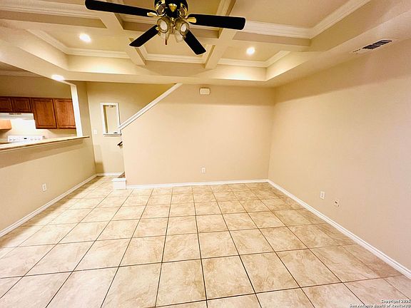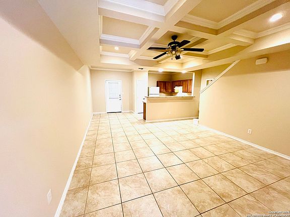 Welcome to your dream townhouse in the heart of San Antonio, TX. This stunning property boasts three spacious bedrooms and 2.5 well-appointed bathrooms. The open floor plan is perfect for entertaining, with a seamless flow from the kitchen, equipped with a stove/oven, refrigerator, dishwasher, and garbage disposal, to the living area. The living room features a coffered ceiling, a ceiling fan, and high ceilings, adding a touch of elegance to the space. The townhouse also offers the convenience of a washer and dryer connection. The flooring is a mix of stained concrete and plush carpeting, offering both style and comfort. The property also includes window coverings on all windows, a garage door opener, and central heat and air for your comfort. The fenced backyard provides a private outdoor space for relaxation. The location is unbeatable, with easy access to major highways, shopping, entertainment, and the Medical Center. This townhouse is more than just a home; it's a lifestyle.