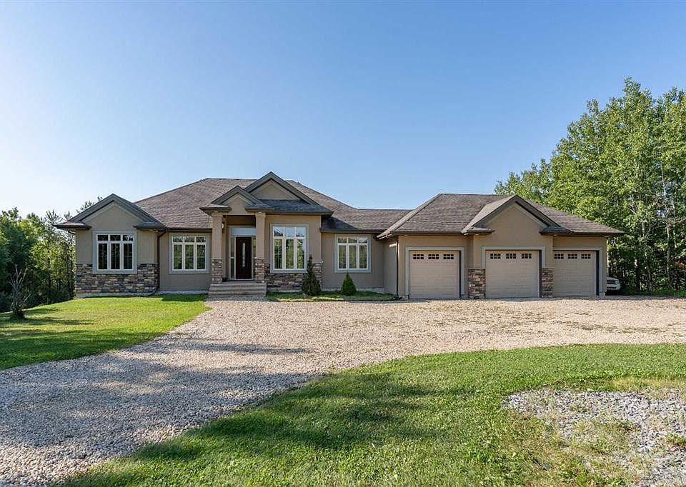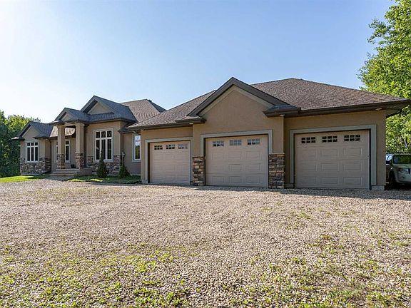Welcome to this stunning bungalow nestled on 3.68 acres in the sought-after Sanctuary Estates of Camrose County. Set in a desirable neighborhood beside the Ministik Bird Sanctuary and known for its privacy and luxury, this property offers an exceptional living experience with a spacious private yard, perfect for outdoor enjoyment. Boasting high-end finishes throughout, this home features 9-foot ceilings with 8 ft doorways, a spacious open layout, and an abundance of natural light in every room. The rich cabinetry in the kitchen, granite counters and walk-thru pantry provide ample storage for any growing family. With 3 well-appointed bedrooms and 2 generous bathrooms, the home is designed for comfort and style. Enjoy cold winter nights infront of the gas fireplace in the living room; or hot summer nights on the upper deck, complete with a gas line for that BBQ. The unfinished walk-out basement provides endless possibilities for customization, while the main floor laundry and triple-car garage add convenience and ease to daily living. Unique garden doors to the fire pit from the basement open fully for moving or entertaining, and offer a fantastic opportunity to develop both inside and outside as you see fit. Whether you're looking to entertain or enjoy peaceful seclusion, this property offers the perfect blend of both.
