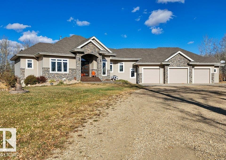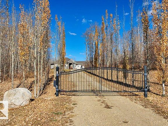 ESCAPE TO TOTAL PRIVACY — SURROUNDED BY MATURE TREES with direct access to trails leading into the stunning Ministik Bird Sanctuary! This 2100sqft walkout bungalow sits on 5.5 acres and features an oversized heated triple garage with a pull-through bay. Offering over 3500 sq. ft. of upgraded living space, this 5 bed, 3.5 bath home blends comfort with luxury. The chef’s kitchen boasts granite counters, a large island, walk-through pantry, pro gas range, double wall ovens & SS appliances — perfect for entertaining. The dining area is wrapped in windows and opens to a covered deck with remote screens, ideal for summer evenings. The main floor features a cozy wood-burning fireplace, a stunning primary suite with walk-in closet & spa-like ensuite, plus a second bedroom or office. The fully finished basement has in-floor heat, 3 bedrooms, 2 baths, a family room with wet bar & 2nd wood-burning fireplace, gym, and cold room. Outside, a remote steel gate, garden & water feature complete this private retreat