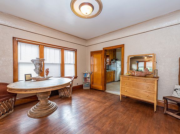 This charming 2 bed 1 bath home won't last long! Neat and clean and ready to go! Beautiful original doors with glass knobs, archways in in the living and dining rooms, 6'' wood trim, original wood floors in beds, living and formal dining rooms. Kitchen features new ceramic tile. The bathroom is charming with original tile but the rest has been updated! Roof redone in 2018. Fresh paint throughout. Full unfinished basement. Door in kitchen has stairway into a HUGE unfinished attic that could be turned into a giant master suite! Nice fenced yard. Don't miss out!