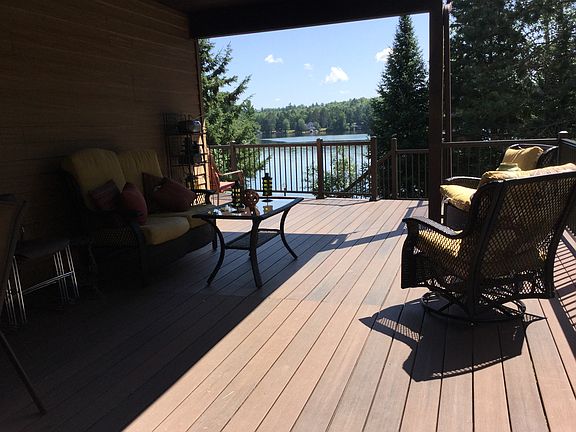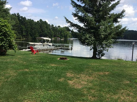 Located on Keyes Lake, a 210 acre lake. 100 feet of lake frontage with a flat slope to the lake from the lower level and a sandy beach. Approx. 2,900 sq feet of finished living space with a walkout basement to the lake. Two fireplaces (upper and lower level)-wood burning with optional natural gas feed for conversion. Approx. 1,000 sq feet of wrap around deck (new maintenance-free decking 2018) with covered deck on the side. Aluminum siding and new roof in 2011. 26 ft x 28 ft attached garage and 28 ft x34 ft detached garage. Sauna in lower level. Air conditioning. New conventional septic drain field installed October 2018. Excellent recreational lake. 80 feet deep spring fed lake. Excellent fishing and great for water skiing. Sandy beach great for swimming. Nearby atv trails. Located on private paved roadway. Quiet dead end road great for walking, strollers, biking.