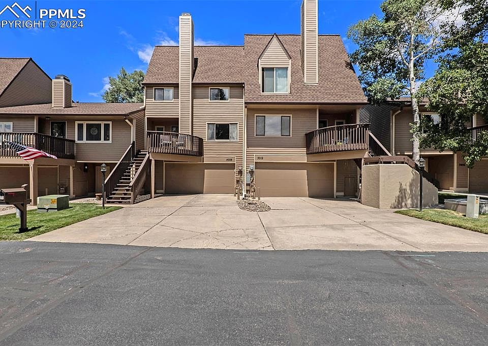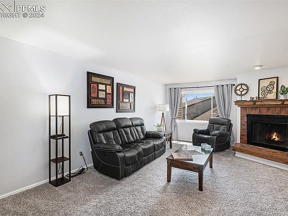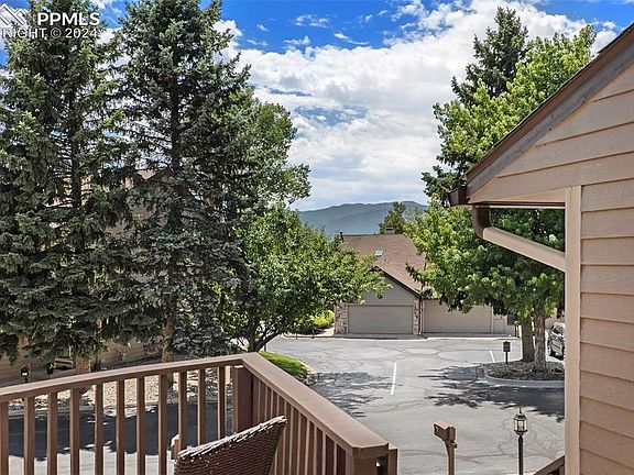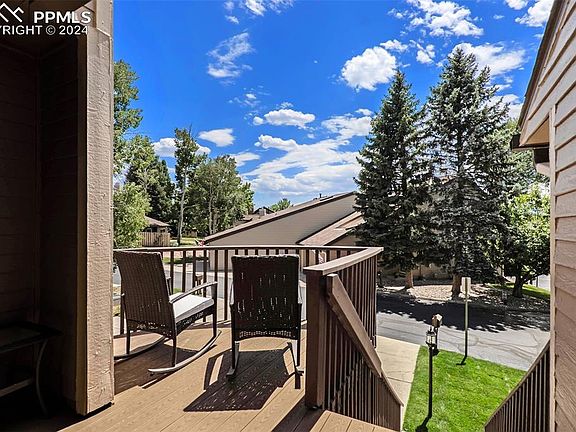 This charming townhome with modern updates and scenic views is a must see. Nestled in a quiet serene complex, this delightful 2 bedroom, 2 and 1/2 bath townhome is a perfect blend of comfort and convenience and has a cozy and inviting atmosphere. This home features hardwood floors and brand-new carpeting and a new neutral color palette throughout the home. The kitchen boasts stainless appliances, two tone cabinets and beautiful backsplash. The dining area is spacious and has easy access to the back patio if you would like to enjoy your meal in the wonderful Colorado weather. The main area is rounded out by a half bath which is convenient when entertaining. Both bedrooms on the upper level each enjoy en-suite baths and walk in closets. Don't miss the lower level area which can serve as a craft room, gaming room, or man cave. Stay cool and comfortable year-round with central air conditioning and enjoy a wood burning fireplace on those chilly Colorado nights. During the warm summer days, take advantage of the community pool and clubhouse, perfect for relaxation and social gatherings. Savor gorgeous mountain views from your front deck, a perfect spot for morning coffee or evening sunsets. The spacious 2 car garage provides plenty of storage and large driveway allows for additional parking. Please note that buyers washer/dryer can be installed in lower level or in smaller upstairs bedroom. This home is centrally located near schools, parks, shopping, entertainment and military bases. Don't miss the opportunity to make this beautiful townhome your new home!