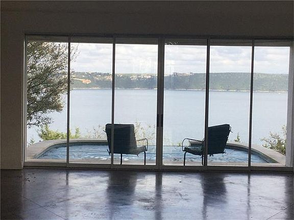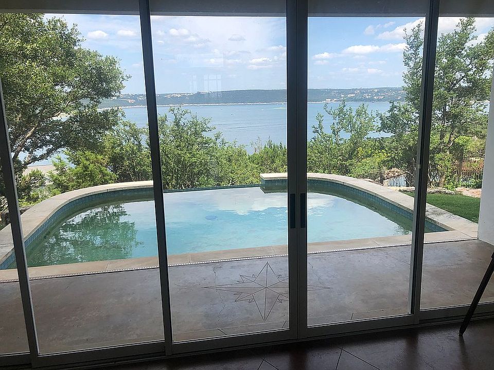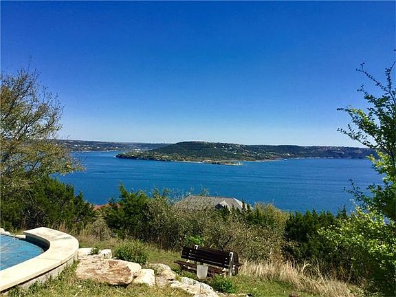 Unparalleled and unobstructed panoramic Lake Travis views from the highest property on McIntyre Circle hilltop (ground floor at 926’) close in on Hudson Bend peninsula on the preferred south side of Lake Travis. 3 story white stucco house and separate garage with blue standing seam metal roof. 3rd floor is a cupola with 360 degree views looking down at Mansfield Dam and across the main body of Lake Travis to The Oasis and Windy Point. Modern open floor plan, bright and airy with high ceilings, scored and stained concrete floors downstairs, and wall-to-wall windows. Dual tri-fold sliding glass pocket wall in living room opens to swimming pool and phenomenal lake views framed by heritage live oak. Over an acre of land, unrestricted, very private and secure. Easy remodel could add 2 more bedrooms and lots of square feet within existing footprint, as well as a garage apartment if desired. 2nd grotto pool not currently used but could easily be rehabbed. 2nd floor full length covered balcony and 2 lanais. Mature landscaping and rock work, multiple smart home features. Unapologetically the best lake views of Lake Travis from a private residence.