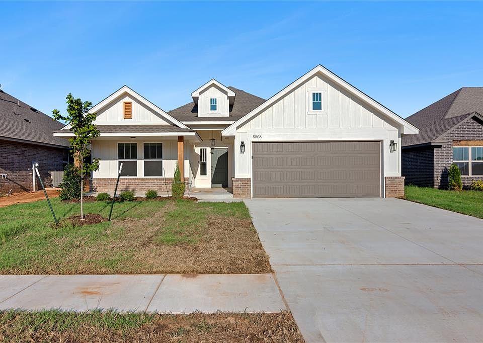 Step into effortless luxury in this beautifully designed 3-bedroom, 2-bath home with a versatile flex space—perfect for a home office, study, or creative nook. Unlike many builds where upgrades come extra, this residence includes high-end features and designer selections that elevate everyday living. From the welcoming front porch to the sunlit entryway with wood-look tile, every detail invites you in. The open-concept layout boasts large low-e windows, an elegant electric fireplace, and stylish wood tile flooring throughout the main living area. Eye-catching light fixtures and custom cabinetry set the stage in the spacious kitchen, where a generous island provides the ideal space for prepping meals or hosting friends. Relax in the serene primary suite, complete with a ceiling fan, spa-inspired en-suite bath featuring a tile shower and indulgent soaker tub. Secondary bedrooms are thoughtfully placed on the opposite side of the home for privacy, along with a second full bath for convenience. Unwind on the covered back patio with your favorite drink, or explore the vibrant community amenities—including a sparkling pool, modern clubhouse, and fully-equipped fitness center. Welcome to comfort, style, and community—all in Mustang Park. Owner is a licensed real estate agent.