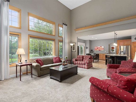 Prepare to be impressed! Upon entering this traditional 2 story, you will be wowed by the 2-story great room and open concept floor plan. Sizable windows overlook the private backyard. The custom kitchen is a dream come true! Huge island, bar area, pantry, upgraded appliances and more. Main floor features a master suite, laundry room, locker storage and office, while 3 bedrooms and full bath occupy the upstairs. Much finished space in the lower level including family room, rec room, exercise room and full bath. Meticulous, dry-walled garage that causes envy. This house just feels like HOME!