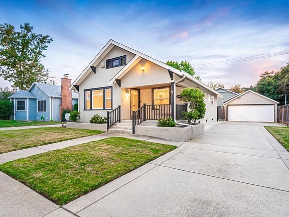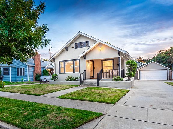 This CHARMING Elmhurst Bungalow blends classic Craftsman character with thoughtful modern updates throughout. A welcoming front porch and tree-lined setting create instant curb appeal, while inside you'll find a bright, clean layout with beautiful crown molding, fresh interior paint, and a spacious living/dining combination. The big renovations are done - 50 year Presidential Roof and dual pane windows throughout. The floorplan is well thought out with a Primary En-suite with its own exterior access, plus two Jack & Jill bedrooms. The kitchen is central to the home and features newer appliances and a generous pantry closet. The home also includes smart home features: Ring security, Nest thermostat, and smart water heater to make everyday living easy. The RARE finished two-car garage offers epoxied floors, drywall, and ceiling fan - perfect for a gym or workshop. Outside, enjoy low-maintenance landscaping and a relaxing front porch swing to take in the Elmhurst lifestyle. Just minutes to walk to UC Davis Medical Center, Aggie Square, parks, cafes, and everything East Sacramento has to offer, this home pairs timeless character with true convenience.