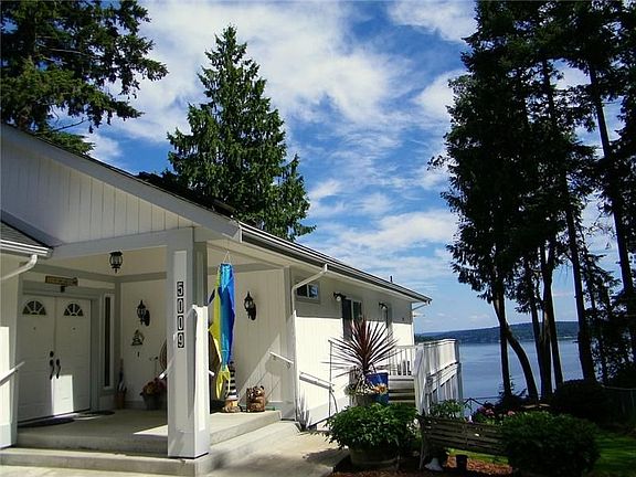 Single level living with spectacular views over Pitt Passage and McNeil Island to Majestic Mt Rainier and out to the sparkling waters of the Puget Sound. 3 spacious bedrooms in a secluded, private setting with beautifully landscaped 3/4 acre, 75 ft waterfront and community access to beach. Enjoy the amazing views from the covered deck area or the open Living and Dining rooms and kitchen with breakfast bar. Lower level features approx. 800 sq ft roughed-in area, covered patio and plenty of storage space.