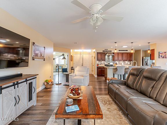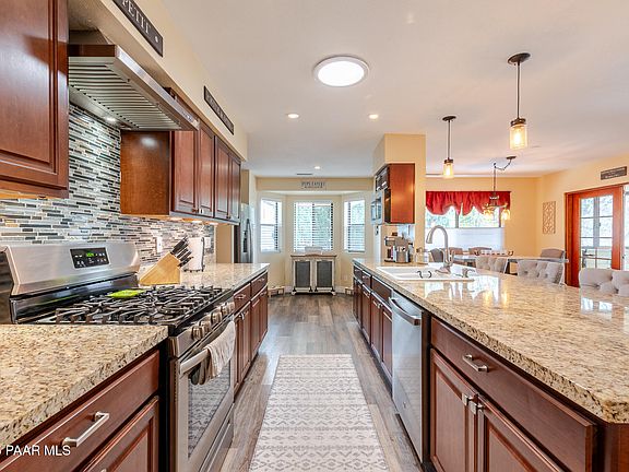 Nestled in the serene and picturesque neighborhood of Yavapai Hills, this beautiful home offers a peaceful retreat. The roof is only 3 years old! Boasting a spacious and open floor plan, this property is perfect for those seeking a tranquil lifestyle while still being close to all the amenities Prescott has to offer. Step inside to discover a welcoming interior featuring large windows that allow for plenty of natural light and elegant finishes throughout the home. The expansive living area is perfect for both relaxation and entertaining with a bonus room and seamless access to the outdoor patio. The kitchen is equipped with modern appliances, ample cabinetry and a large island, making it a dream for home cooks and entertainers alike.