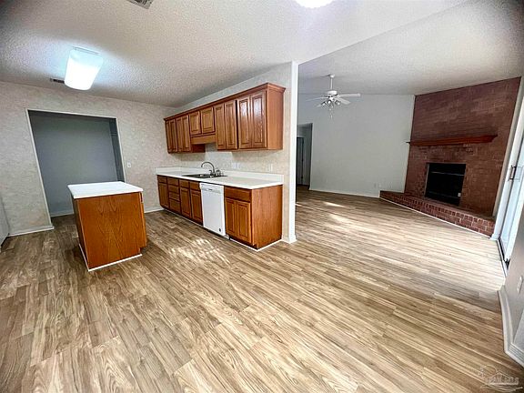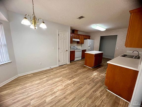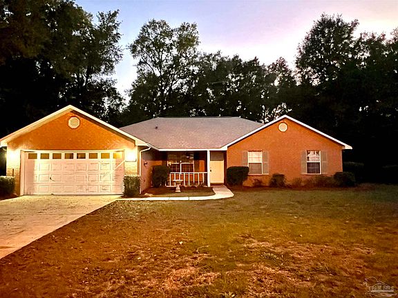 4 Bedroom/3 Bath split plan Brick home on .38 acres cul-de-sac lot in Pace. Beautiful new flooring, Interior newly painted. Large great room with a vaulted ceiling and brick hearth fireplace. Large eat-in kitchen that offers abundant oak cabinets, breakfast bay, pantry, and a functional island. There is also a formal dining room. The master bath has a double sink vanity, garden tub, separate shower, and two walk-in closets. HVAC System replaced 2023. Entertain on the Huge 33x24 brick patio There is also a 12x20 open patio off of the Great Room. All this sits on a privacy - fenced cul-de sac lot.