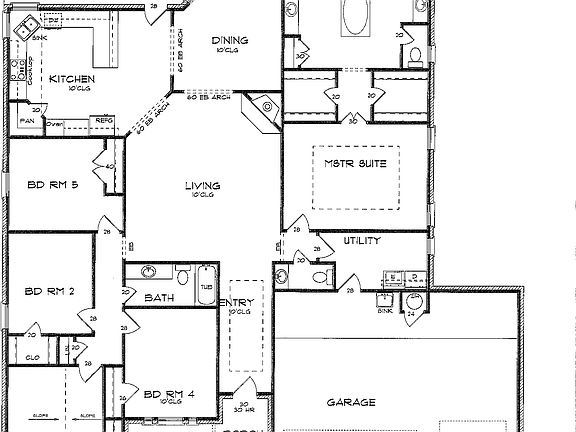 Room for everyone in this 5-bedroom Frontier plan with large living room with fireplace and pop-up ceilings. The formal dining room and breakfast bar offer plenty of room for entertaining. Granite counter tops, Slate steel appliances with double ovens and a walk-in pantry make the chef's kitchen. The master suite includes a jetted tub, separate walk-thru shower, marble vanities and his and hers walk-in closets. Outside is complete with a covered patio, privacy fence, and landscaping with front and back sod and sprinkler system.