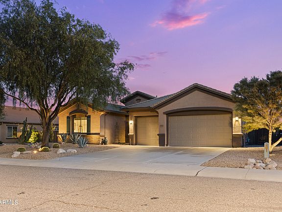 This gorgeous home is located in the highly sought after Arroyo Grande community, with full access to all Anthem amenities. Situated on a large, private lot with sweeping mountain and Sonoran Desert views and no neighbors directly behind. You will enjoy both privacy and natural beauty. Step inside & fall in love with the bright, open split floor plan featuring a spacious great room, 3 bedrooms, 2 baths, and a 3 car garage. The primary suite feels like a retreat of its own, complete with a beautifully remodeled spa-style bathroom and private access to the backyard. Outdoors, you'll find an entertainer's paradise with an extended covered patio overlooking your oversized swimming pool, perfect for hosting friends or relaxing weekends at home. Please see the document tab for a list of recent updates, including a newer HVAC. With the solar on this home your electric bills will be minimal. Arroyo Grande is the only area in Anthem where you can park your RV or boat on the side of your home. Just minutes from Lake Pleasant, shopping and the TSMC plant.